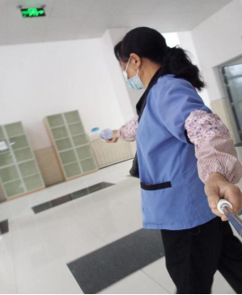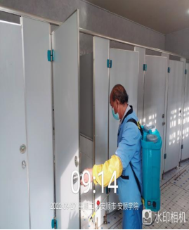 消杀方式:外部环境采用84消毒液,在进校口设置地毯,放上2:100的浓度消毒水,对进校车辆进进行消毒。其余部位也采用2:100的浓度消毒水进行消杀;内部环境地面采用1:100的浓度消毒水进行消杀,课桌椅、门把手、楼梯扶手、电梯按钮、水龙头、冲水阀等采用75%酒精进行消杀。(文/图:深圳市航天物业管理有限公司安顺分公司安顺学院物业服务中心提供)
