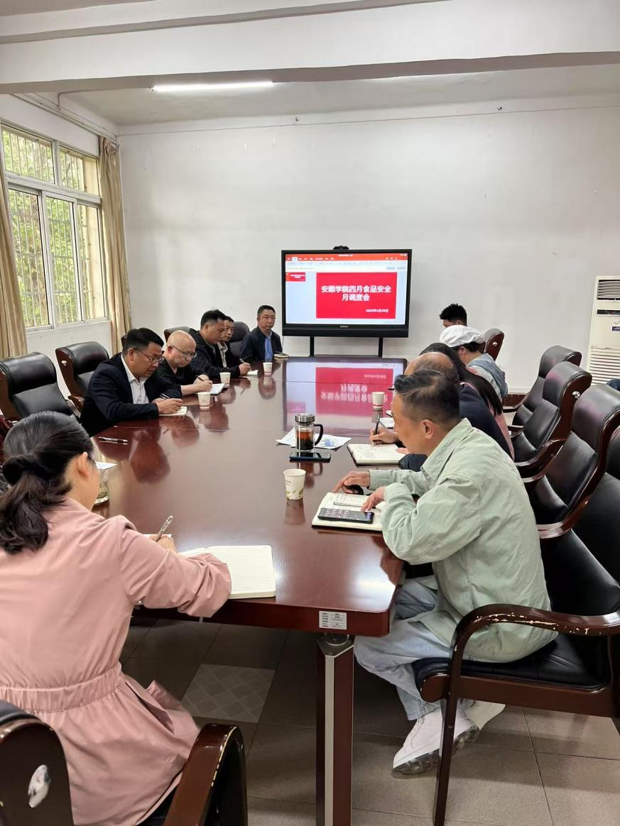 2025年4月29日,安顺学院保卫处、后勤处联合召开安顺学院2025年4月食品安全月调度,会议由后勤处处长熊瑜主持,保卫处、后勤处、校内食堂及餐饮商户业主参加。