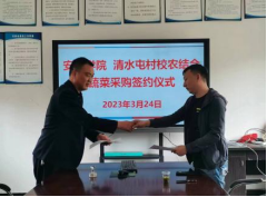 为助力村乡振兴,切实做好校农结合工作,2023年3月24日,后勤处组织芳华苑、思源居两家食堂负责人,以及食堂管理科相关人员到学校乡村振兴帮扶点——西秀区七眼桥镇清水屯村举行蔬菜采购签约仪式。后勤处处长陈宇、副处长卢书章参加仪式。