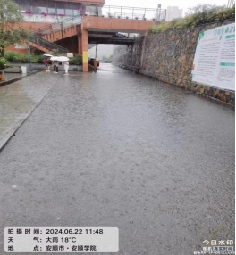 近日,我省正式进入汛期,多地面临极端强降雨天气的严峻挑战。2024年6月22日,校内遭遇强降雨天气,导致学生宿舍、教学楼、办公楼屋顶、商铺、医务室、电梯井漏水、渗水,树木倒塌,新校区因排水困难出现大面积积水等突发情况。我校后勤处迅速响应,按照学校领导的指示,立即启动应急预案,第一时间组织工作人员赶赴现场,对各项问题进行紧急处理。同时,韦英副校长带领杨晟副处长、宿管科科长叶蓉、水电科齐波及物业公司人员对学校地质灾害进行全面细致的排查,并对新校区排水等紧急问题进行处置,确保不遗漏任何一处隐患,全力保障全校师生的生命财产安全。