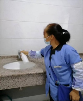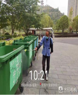 消杀方式:外部环境采用84消毒液,在进校口设置地毯,放上2:100的浓度消毒水,对进校车辆进进行消毒。其余部位也采用2:100的浓度消毒水进行消杀;内部环境地面采用1:100的浓度消毒水进行消杀,课桌椅、门把手、楼梯扶手、电梯按钮、水龙头、冲水阀等采用75%酒精进行消杀。(文/图:深圳市航天物业管理有限公司安顺分公司安顺学院物业服务中心提供)