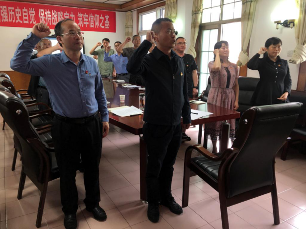 全体党员认真观看了“不忘初心、牢记使命”专题视频并重温入党誓词,大家一致表示要在今后的工作中以实际行动诠释“不忘初心、牢记使命”。
