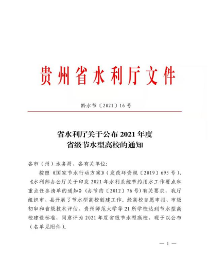 我校荣获“2021年度贵州省节水型高校”称号