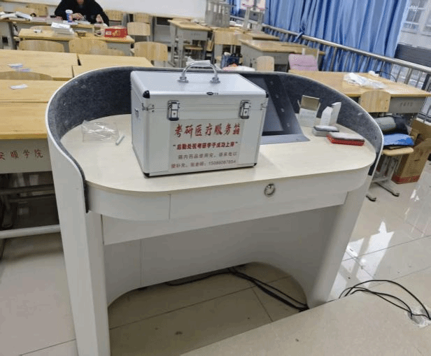 在医疗保障方面,后勤处立足备考学子高强度学习下的健康需求,精准统筹物资调配,实现考研自习室医疗保障全覆盖。针对 1-11 栋(含 F5 栋)学生宿舍、顺理楼、美术设计楼、乐学楼等学子集中备考的重点楼宇,精准投放 23 个考研专属医疗服务箱,箱内配齐感冒药、退烧药、止痛药、创可贴、消毒湿巾、体温计等常用药品及应急防护物资,为学子们的身体健康筑起 “移动防护墙”,让大家在备考途中无健康后顾之忧。