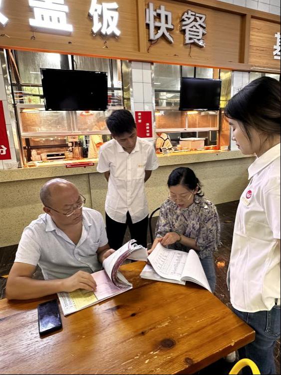 检查重点围绕食品加工制作、环境卫生管理、从业人员健康状况以及食品安全制度落实等方面展开。食品加工制作区域,严格检查了加工设备的清洁卫生、操作人员的个人卫生以及食品加工流程是否符合规范,杜绝交叉污染。环境卫生管理上,对食堂就餐区域进行全面检查,确保环境整洁。此外,还逐一核查了从业人员的健康证,保证均持证上岗。